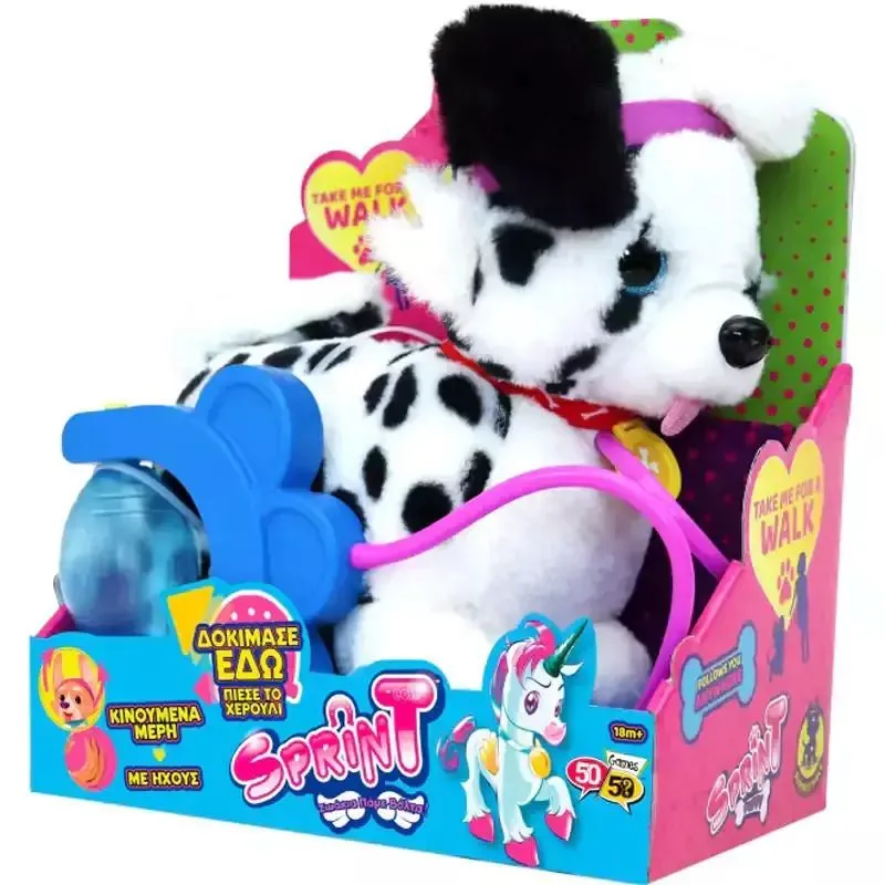Γνώρισε τα πιο γρήγορα ζωάκια της πόλης. Τα ζωάκια Sprint σε ακολουθούν παντού! Βγάλε το ζωάκι σου βόλτα στη γειτονιά και δες το να κερδίζει τις εντυπώσεις με τις απίστευτες φιγούρες του! Το πιο γρήγορο και χαριτωμένο σκυλάκι Δαλματίας που θα γίνει ο καλύτερός σου φίλος στις βόλτες.