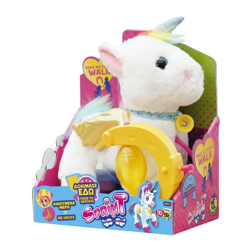 Λούτρινο Sprint Μονόκερος Πάμε Βόλτα Γνώρισε τα πιο γρήγορα ζωάκια της πόλης. Τα ζωάκια Sprint σε ακολουθούν παντού! Βγάλε το ζωάκι σου βόλτα στη γειτονιά και δες το να κερδίζει τις εντυπώσεις με τις απίστευτες φιγούρες του! Ο πιο γρήγορος και χαριτωμένος μονόκερος που θα γίνει ο καλύτερός σου φίλος…
