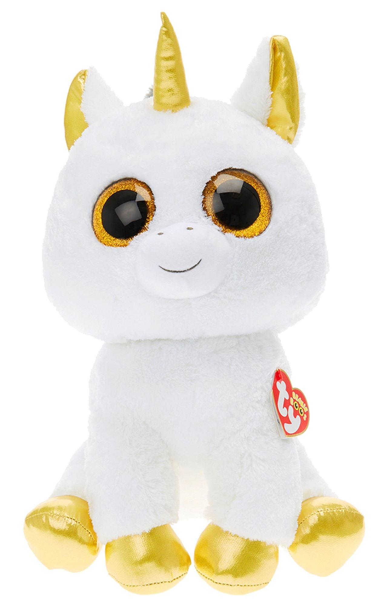Λούτρινο από Beanie Boo Ty. Λούτρινο χνουδωτό μονόκερος λευκός με χρυσά μάτια και χρυσό κέρας.