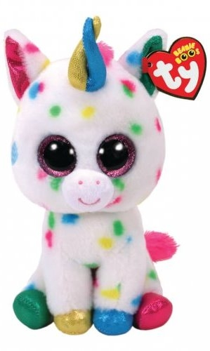 Λούτρινο από Beanie Boo Ty. Λούτρινο χνουδωτό μονόκερος λευκός με πολύχρωμες πιτσιλιές, ρόζ μάτια και δίχρωμο κέρας.