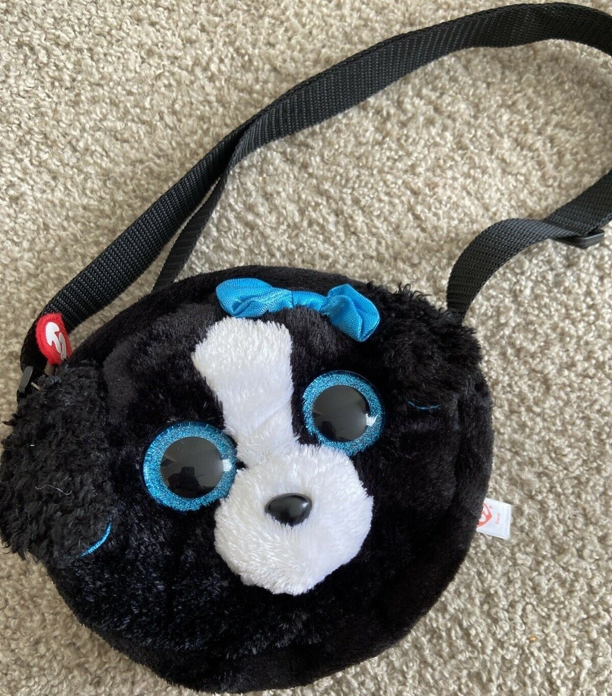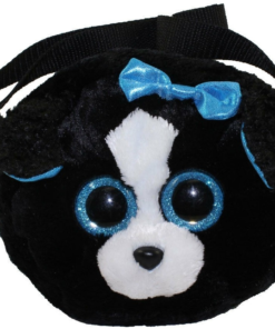 Λούτρινο Χνουδωτό Τσαντάκι Ώμου Σκύλος Μαύρος-Άσπρος