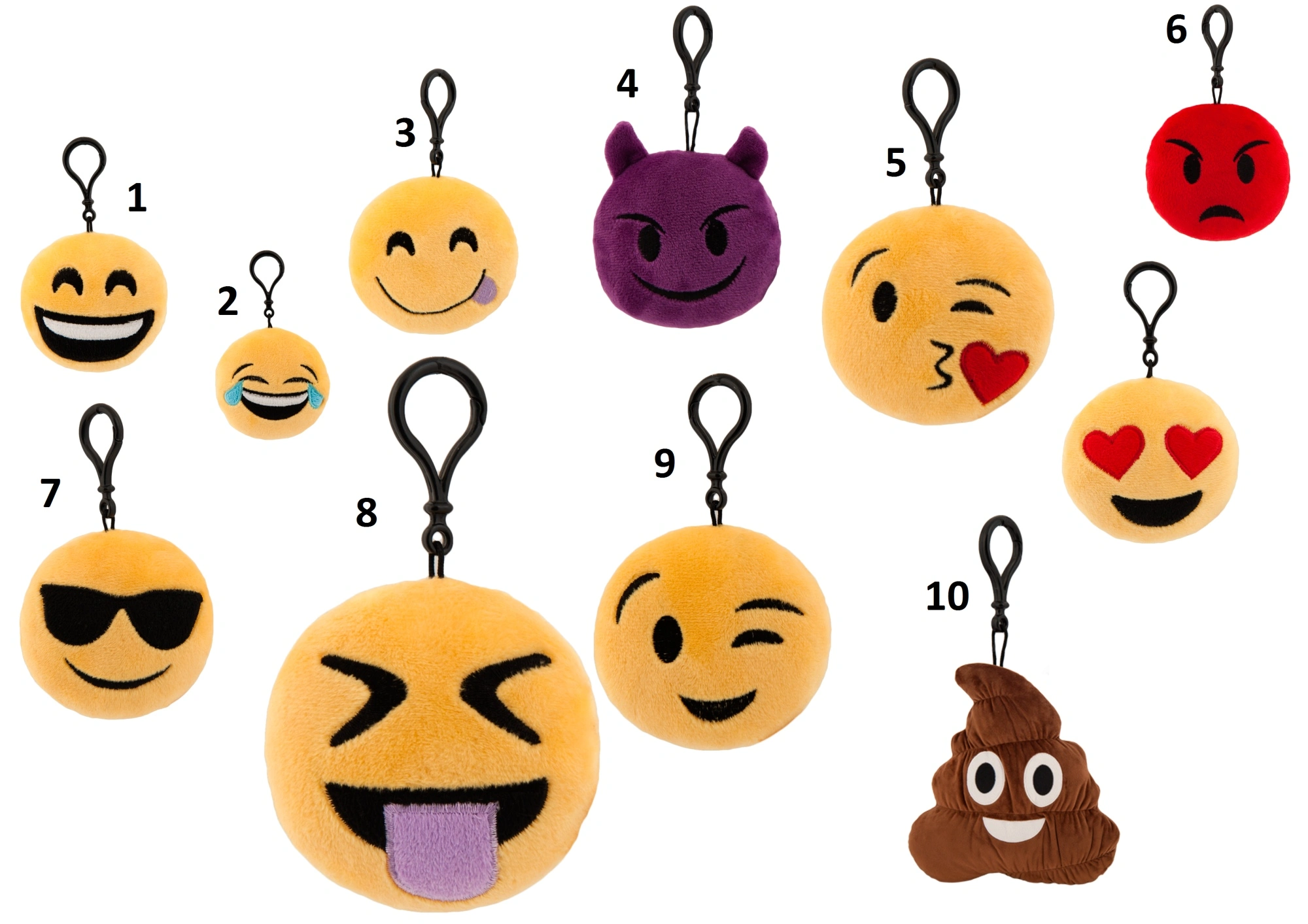 Λούτρινο μπρελόκ Emoji 9,5 εκατοστά. Μ:9,5x Π:9 εκ. Ύψος (με μπρελόκ): 14,5 εκ.Το προϊόν διατίθεται σε διάφορα σχέδια ή χρώματα. Η επιλογή γίνεται τυχαία. ΠΩΛΟΥΝΤΑΙ ΞΕΧΩΡΙΣΤΑ