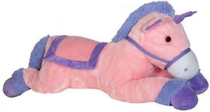 Λουτρινος Μονοκερος Ξαπλωτος Ροζ-Μωβ 110 Εκ. Λούτρινο μονόκερος με χρωματιστή ουρά και χαίτη.