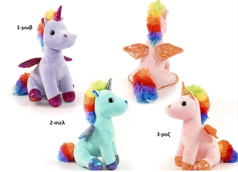 Μονόκερος Λούτρινος 23εκ σε 3 χρώματα Μονόκερος σε παλ χρώματα και glitter λεπτομέρειες Μωβ-Ροζ-Σιελ