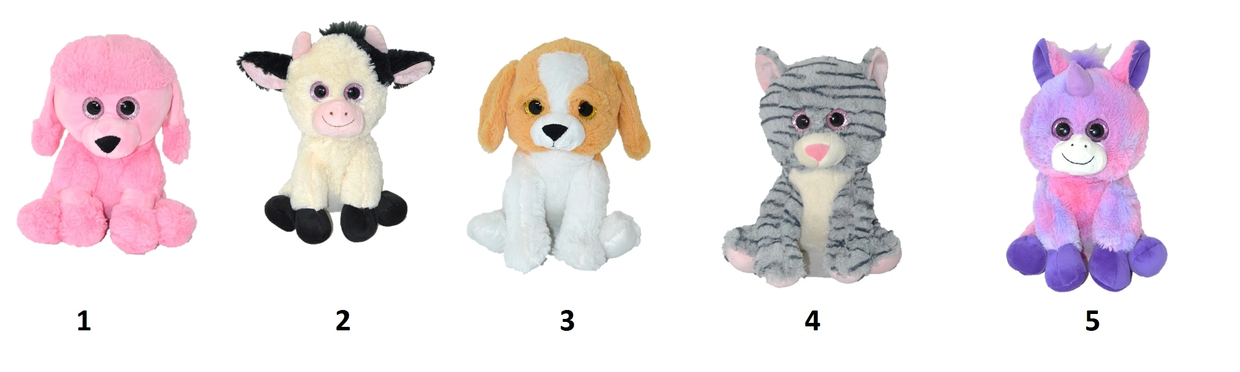 Λούτρινα ζωάκια 30 εκ. με γκλίτερ μάτια σε 5 σχέδια.