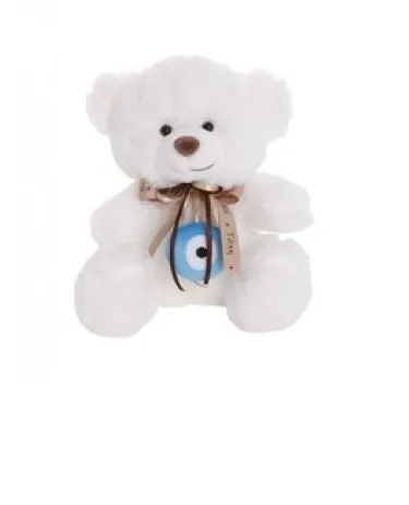 Λούτρινο Αρκουδάκι Bobo Λευκό Με Μπλέ Μάτι Ευχή 40 Εκ. (M4008)
