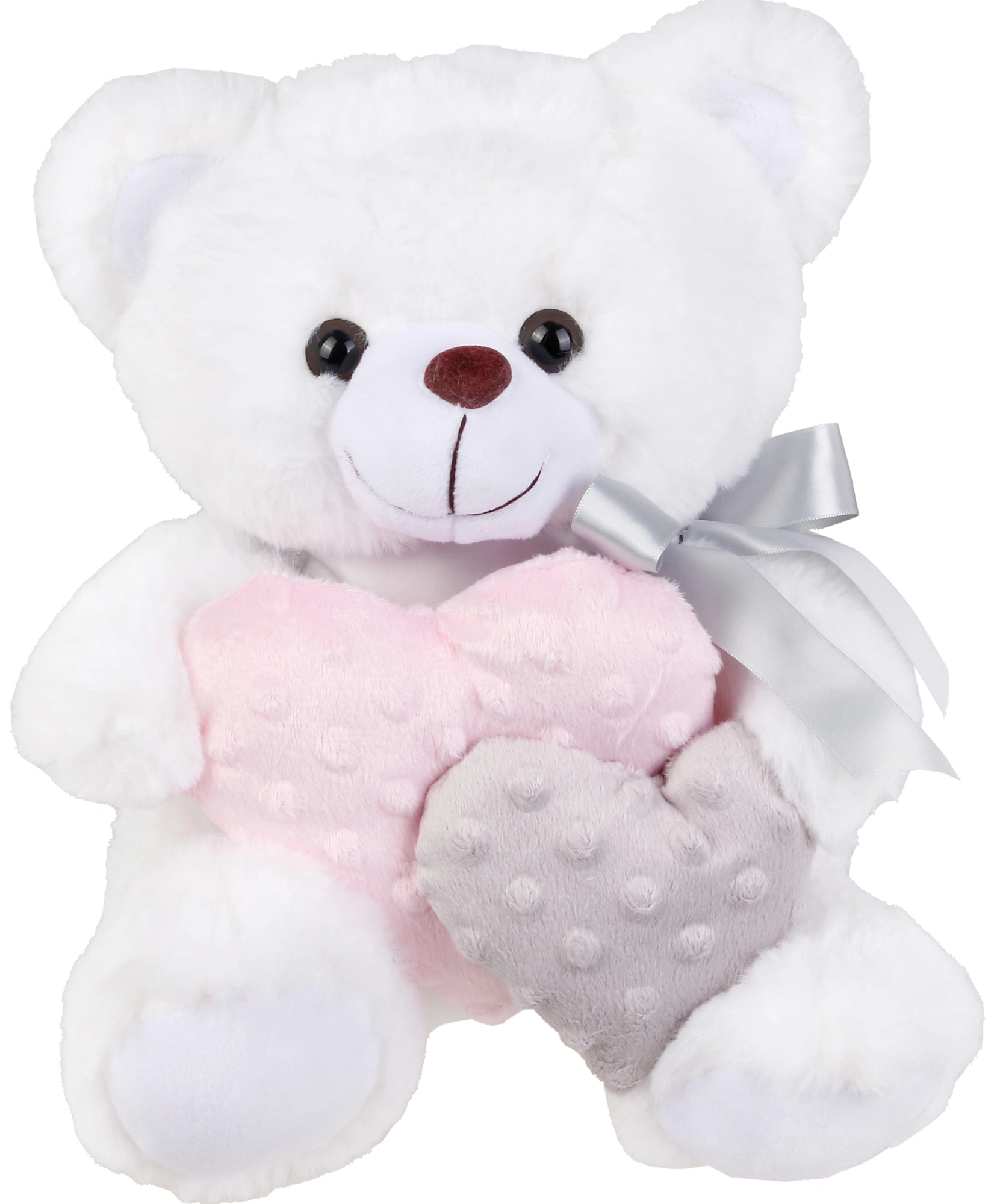 Λούτρινο Αρκουδάκι Λευκό 25 εκ Με Καρδιές Minnie Ροζ/Γκρι Λούτρινο αρκουδάκι Αγίου Βαλεντίνου