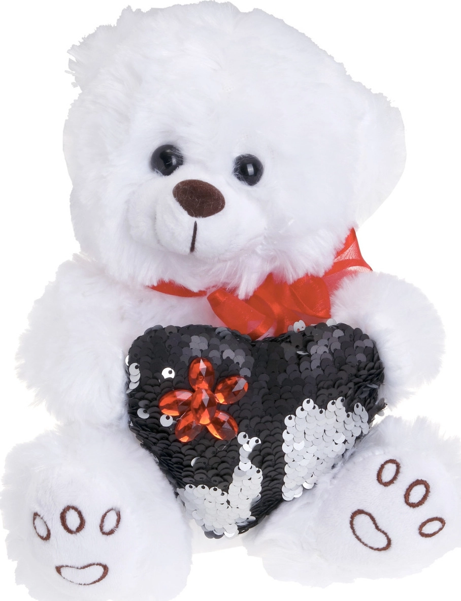 Λούτρινο αρκουδάκι Λευκό Με Μαύρη Καρδιά Από Παγέτες