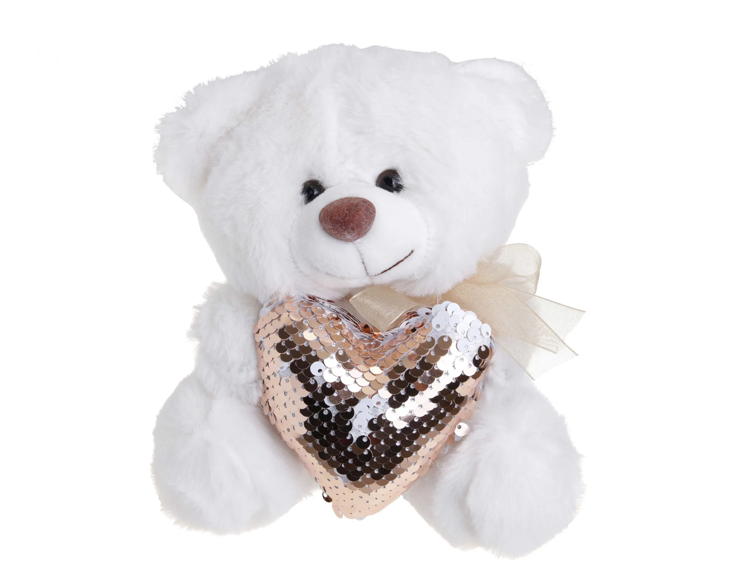 Λούτρινο Αρκουδάκι Μινι 18εκ Λευκό Με Χρυσή Καρδιά Παγέτα