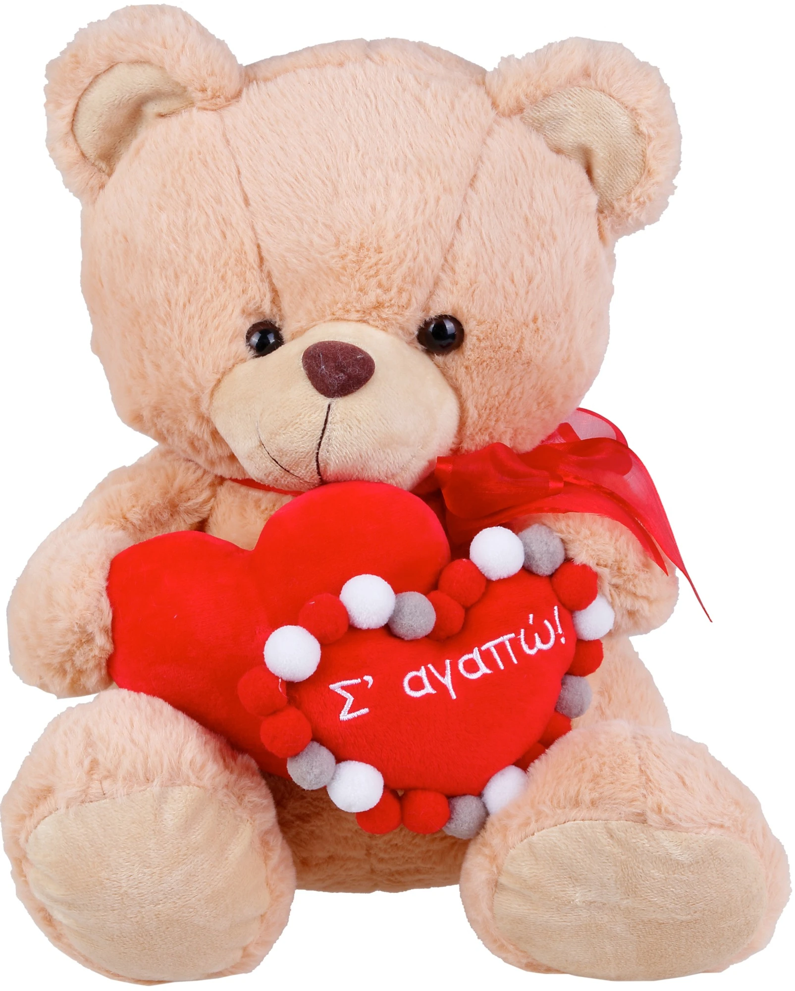 Λούτρινο Αρκουδάκι Μπεζ 40 εκ Με Διπλή Καρδιά ΠονΠον “Σ΄αγαπώ”