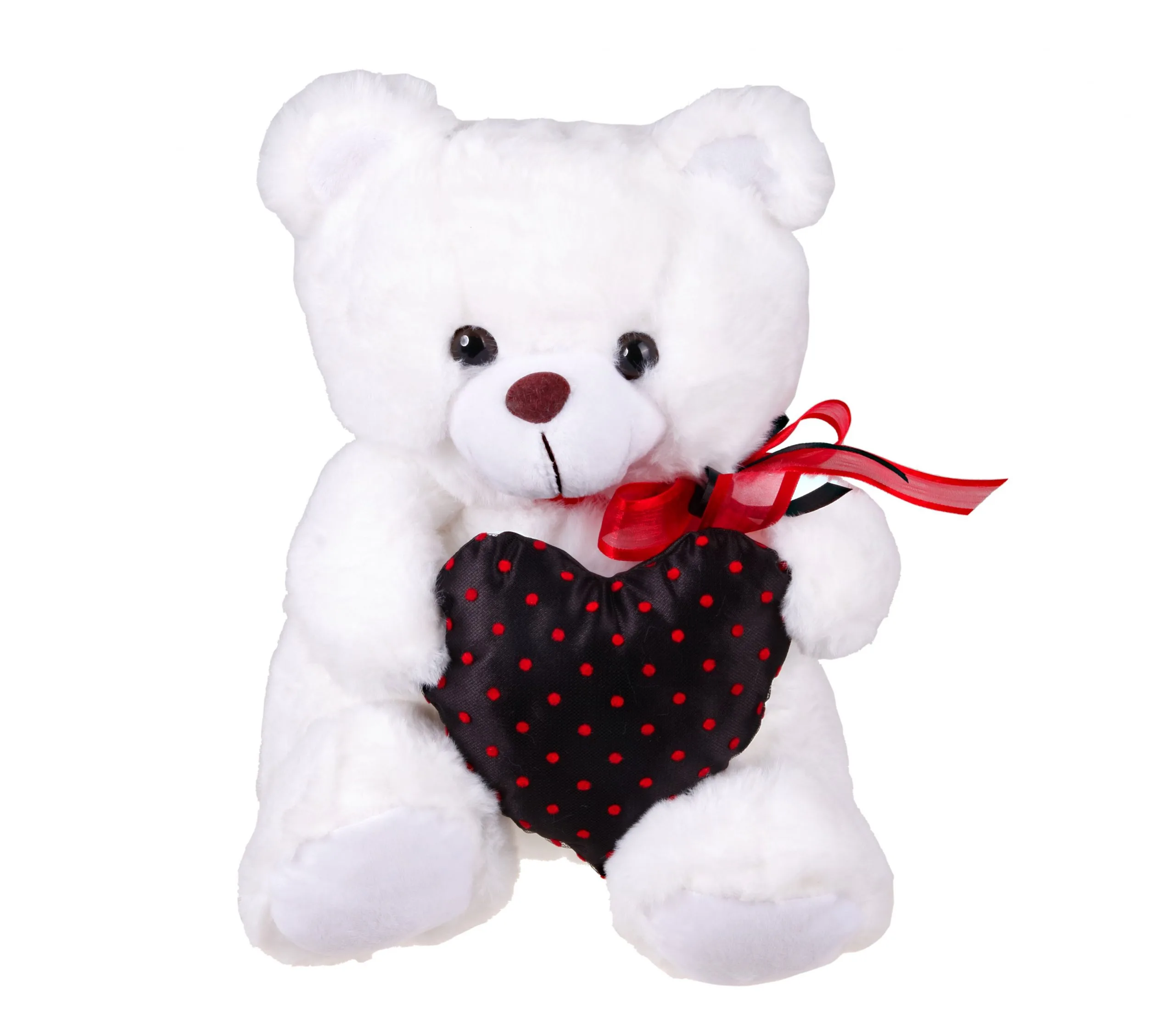 Λούτρινο Αρκουδάκι ΒΟΒΟ 20εκ Λευκό Με Πουά Μαύρη Καρδιά