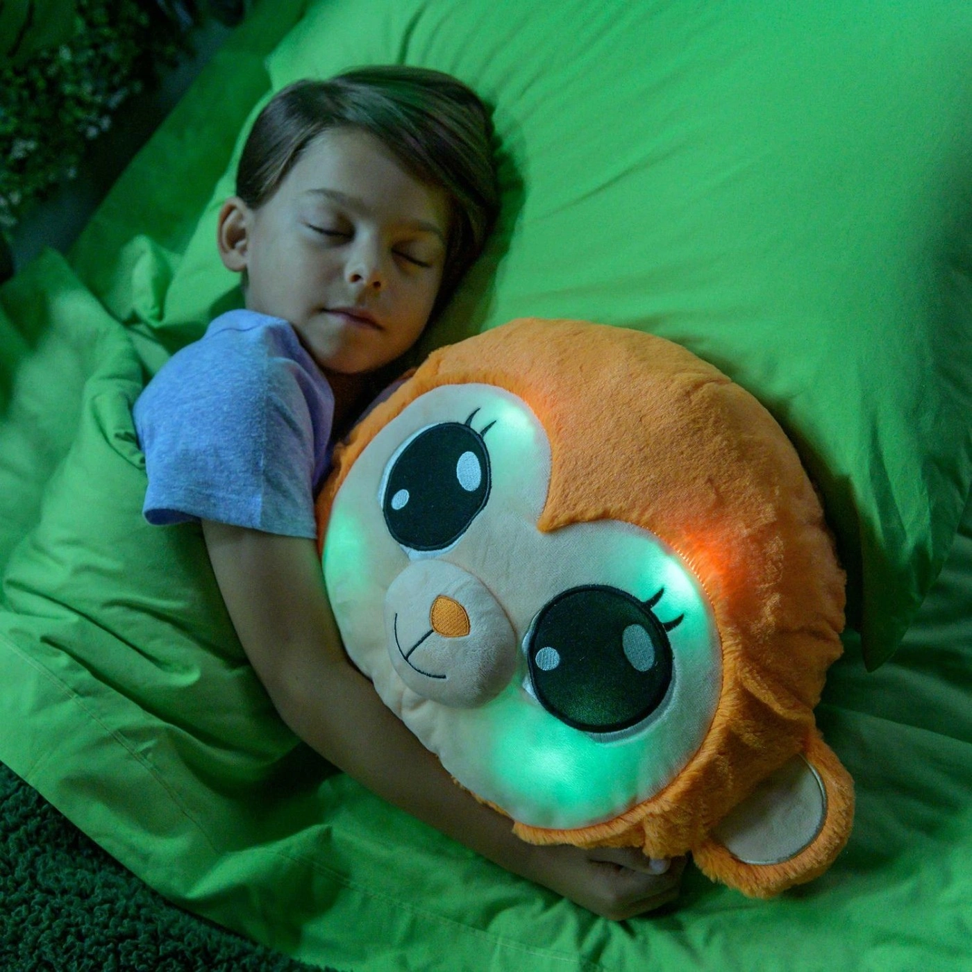 Λούτρινο Lullabrites Μαξιλάρι Μαϊμουδάκι 30Χ35 Eκ. Με 3 νανουρίσματα, εναλλαγή φωτισμού και διακόπτη που σταματάει το φως και τη μουσική. *Oι μπαταρίες περιλαμβάνονται.